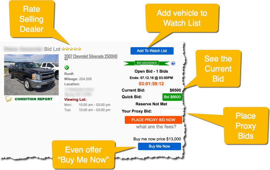 Buyers/Wholesalers can place their bids online any time a sale is running. Once the sale ends, the computer tabulates the winners and a notice is emailed and /or texted to the buyer and seller.